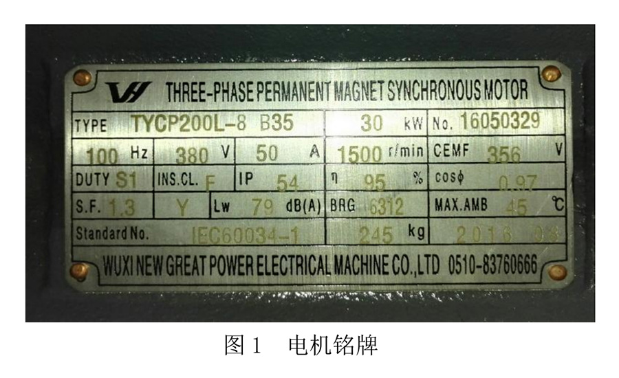 我們選用的是30KW的FC360變頻器,驅(qū)動(dòng)的是30KW的三相交流永磁同步電機(jī),電機(jī)磁極數(shù)為8極,額定頻率為100Hz,具體電機(jī)參數(shù)如圖1銘牌所示。FC360采用VVC+控制原理,配置過(guò)程閉環(huán)模式后,試運(yùn)行十分流暢,但停車后會(huì)有一點(diǎn)點(diǎn)慣性反轉(zhuǎn)現(xiàn)象。后來(lái)發(fā)現(xiàn)是由于空壓機(jī)本身的機(jī)械慣性導(dǎo)致的,為了克服慣性問(wèn)題,我們?cè)谧冾l器上加了一點(diǎn)點(diǎn)直流制動(dòng),效果馬上就體現(xiàn)出來(lái)了,能做到說(shuō)走就走,說(shuō)停就停的效果。值得注意的是,變頻器對(duì)同步電機(jī)的電機(jī)參數(shù)比較敏感,所以事先跟電機(jī)廠家確定好電機(jī)的定子阻抗和d軸電感這兩個(gè)參數(shù),效果會(huì)更佳。