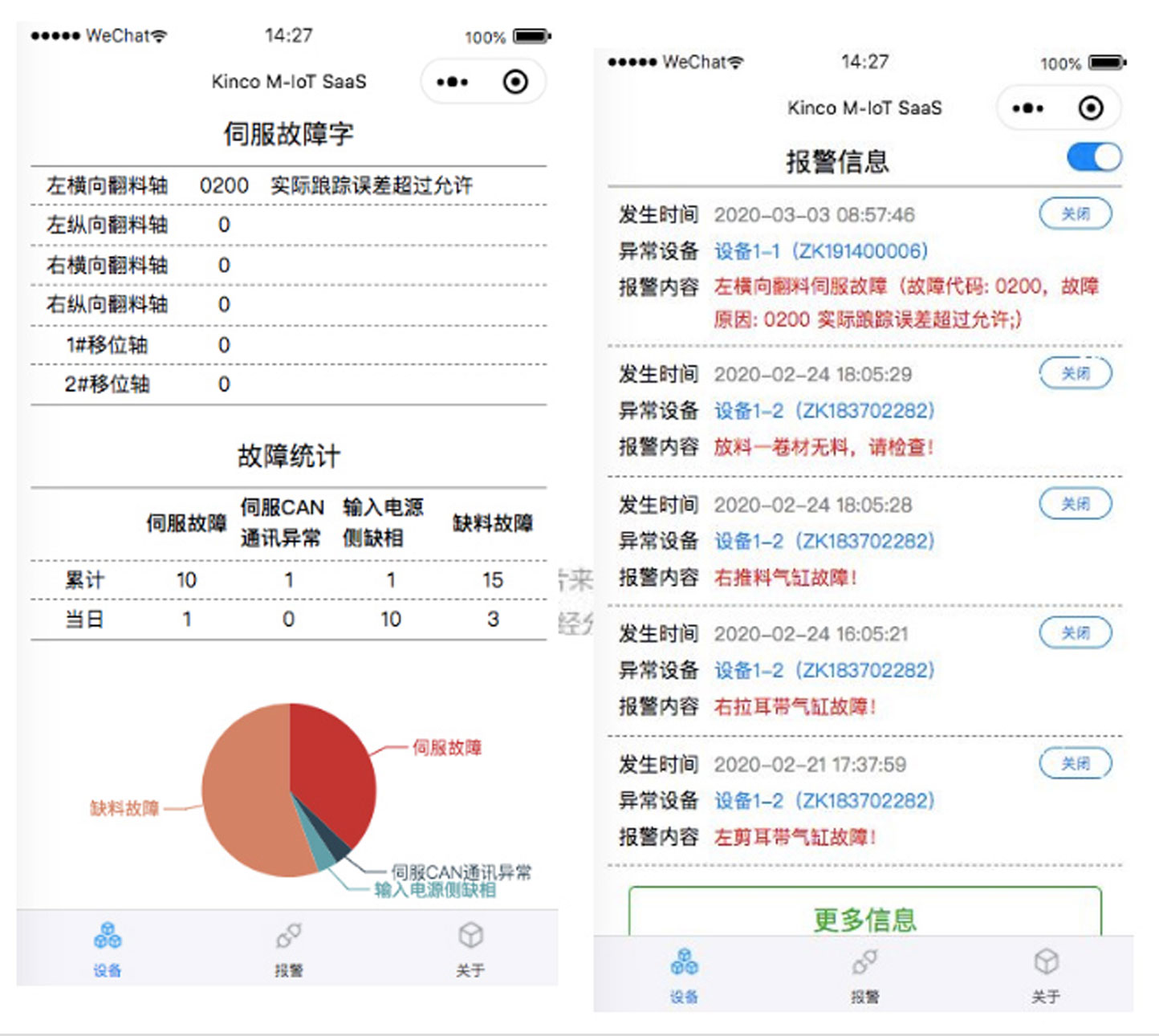 步科口罩機Plus方案,在CANopen總線伺服驅(qū)動產(chǎn)品基礎(chǔ)上,迅速升級M-IoT物聯(lián)網(wǎng)遠(yuǎn)程運維服務(wù),快速完善了設(shè)備報警和維護(hù)信息,增加了遠(yuǎn)程診斷服務(wù)功能,進(jìn)一步打通了現(xiàn)場、設(shè)備商和部件商的溝通渠道,幫助現(xiàn)場人員快速排查故障。