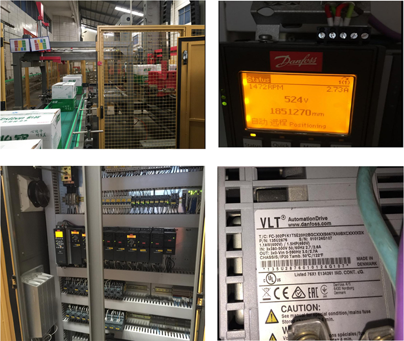 這次在東莞市莞怡食品飲料有限公司(生產(chǎn)怡寶品牌飲用水)的紙箱堆垛機(jī)上選用的丹佛斯 FC302+IMC 方案,通過(guò)現(xiàn)場(chǎng)實(shí)際運(yùn)行證明 IMC 定位控制功能加上帶有編碼器反饋的異步電機(jī)拖動(dòng)系統(tǒng),可以很好的達(dá)到原設(shè)備的功能和生產(chǎn)要求,客戶也對(duì)丹佛斯 FC302 系列變頻器高性能表現(xiàn)給予了強(qiáng)烈的肯定。