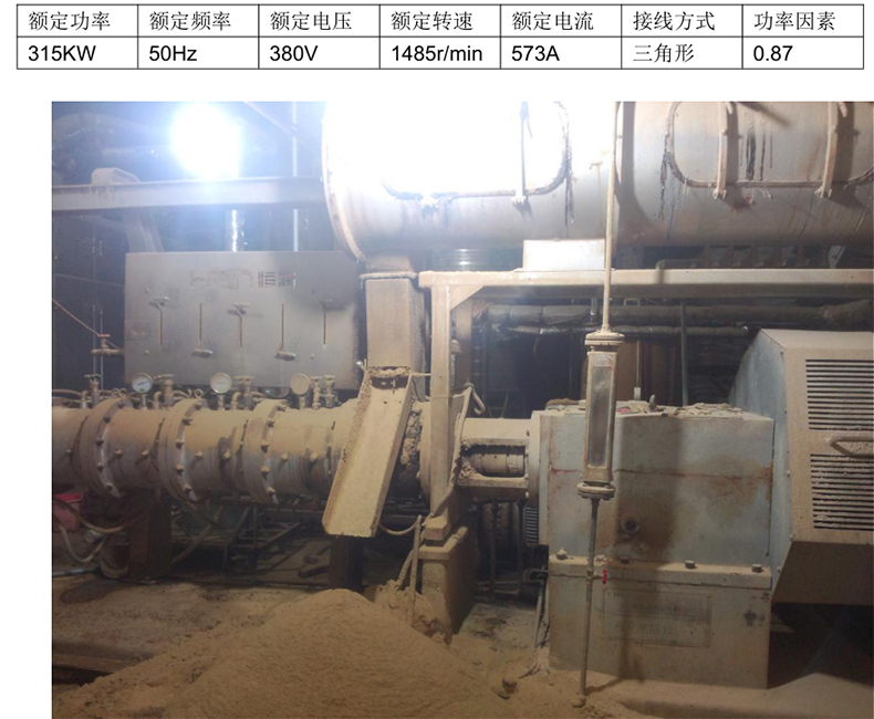 2、 、 改造設(shè)備概述: :客戶要求改造的設(shè)備為膨化機,達315KW 功率(實際銘牌數(shù)據(jù)如下表1)。膨化機工作原理為:利用膨化機的不等距非標準螺旋系統(tǒng)的擠壓推進,物料中的氣體被排出,并迅速被物料填充,物料受剪切力作用而產(chǎn)生回流,使機膛內(nèi)的壓力增大,隨著摞旋與機膛間的磨擦使物料充分混合、擠壓、加熱、膠合、糊化而產(chǎn)生組織變化,原有的結(jié)構(gòu)受到破壞,同時機械能通過物料在膛內(nèi)的磨擦作用而轉(zhuǎn)化為熱能,使物料成為具有流動性質(zhì)的膠凝狀態(tài),物料被擠壓到出口時壓力由高壓瞬間變?yōu)槌海筛邷厮查g變?yōu)槌?,造成水分迅速地從組織結(jié)構(gòu)中蒸發(fā)出來,使其內(nèi)部形成無數(shù)微孔結(jié)構(gòu),再通過切割裝置,切割冷卻即膨化成形。
