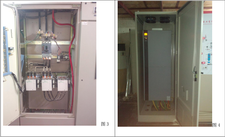 根據(jù)實際情況及以上的分析,電機采用丹佛斯 FC302 系列變頻器(額定功率 315KW,額定電流 600A)控制,變頻器前端加裝一個保護斷路器(額定電流 630A),因生產(chǎn)車間環(huán)境很惡劣,需為變頻器配備電柜(如上圖 4),放置于中央控制室。