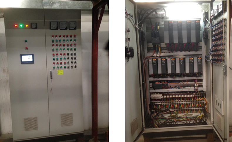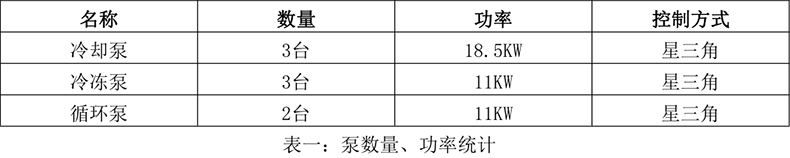 該系統(tǒng)設(shè)計(jì)之初,均沒有考慮冷卻泵、冷凍泵、循環(huán)泵采用變頻控制(如下表1),而是采用傳統(tǒng)的星三角啟動(dòng)方式(舊電柜見下圖1),根據(jù)對(duì)系統(tǒng)運(yùn)行工藝的觀察,泵總功率110.5KW,電能浪費(fèi)嚴(yán)重,存在較大的節(jié)能空間。