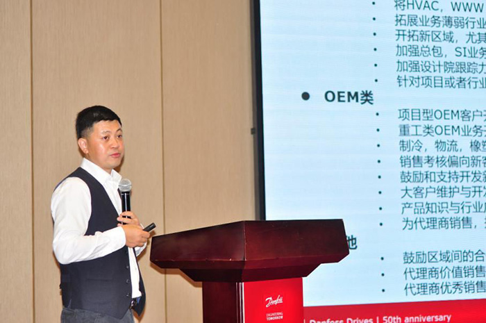 在12月14號(hào)上午的會(huì)議中,丹佛斯傳動(dòng)中國(guó)區(qū)副總裁盧中平首先登場(chǎng),為大家介紹了丹佛斯傳動(dòng)2018年的業(yè)務(wù)情況以及家鄉(xiāng)3.0戰(zhàn)略規(guī)劃。讓不少合作伙伴了解到了未來(lái)丹佛斯在中國(guó)區(qū)的戰(zhàn)略規(guī)劃。